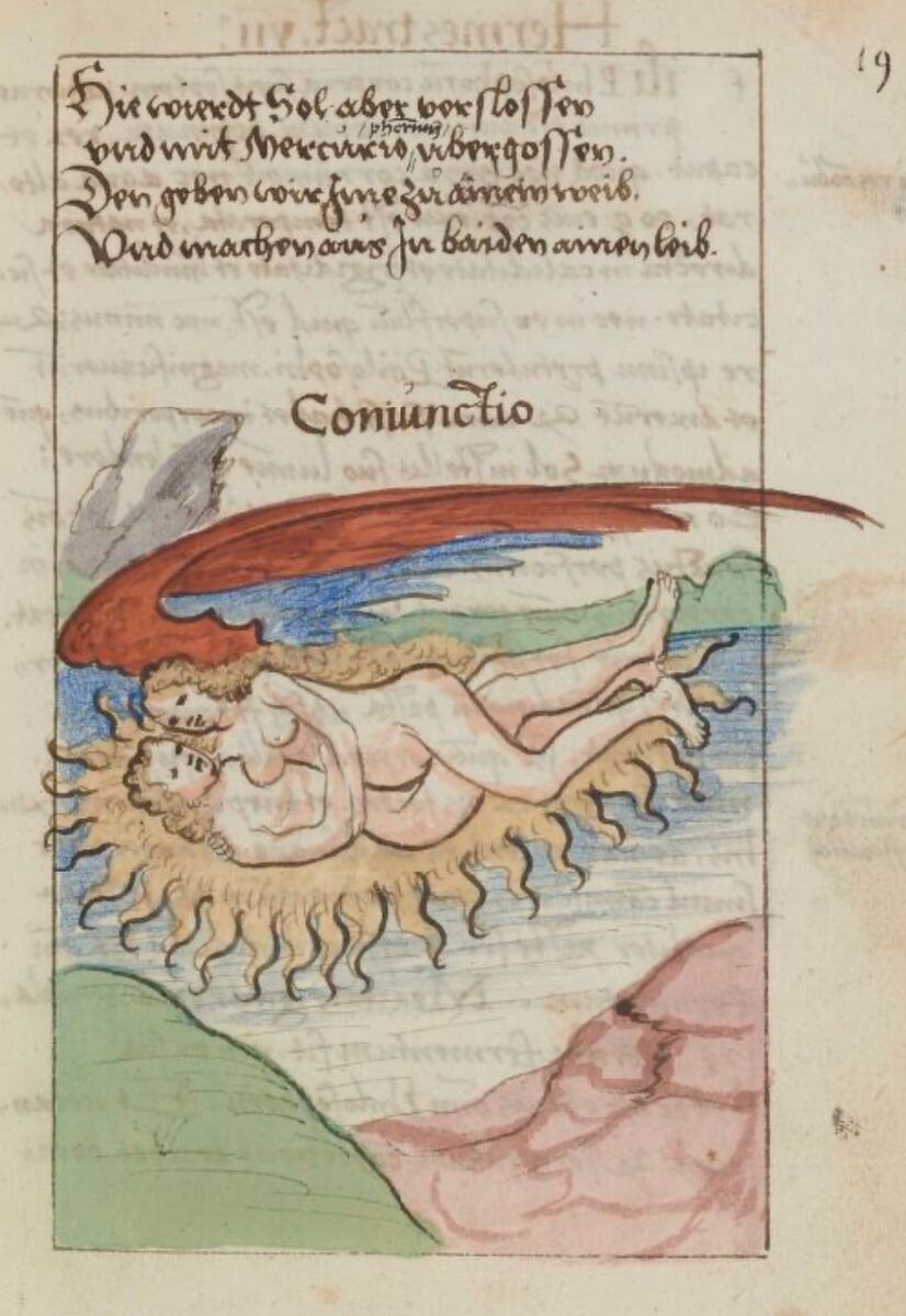 Через дану еротичну метафору алхіміки зображували зʼєднання Солі і Сірки у Ртуті та утворення нової субстанції, яка є зародком майбутнього Філософського Каменя. На психологічному рівні у парі зароджується спільна Душа стосунків, глибокий емоційний звʼязок. Партнери відчувають глибоке захоплення, єднання та спорідненість душ. Домінує сильне, часто ірраціональне почуття «одне ціле» - Містичне Співучастя. В ідеальному сценарії відбувається інтеграція важливих якостей, які раніше сприймалися як ті, що належать партнеру, а зараз переживаються як свої, або тих своїх цінних якостей, які відкрили і підсвітили партнери один одному - у такому союзі обоє партнерів стають ніби кращими версіями себе або принаймні так відчувають себе у присутності коханої людини.