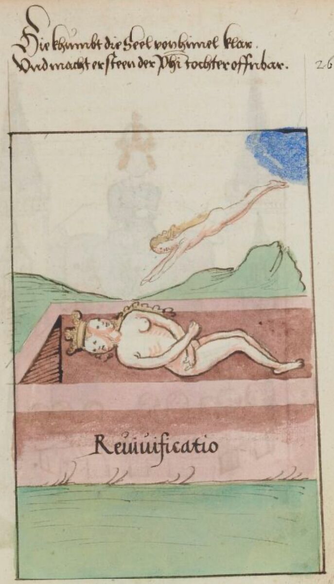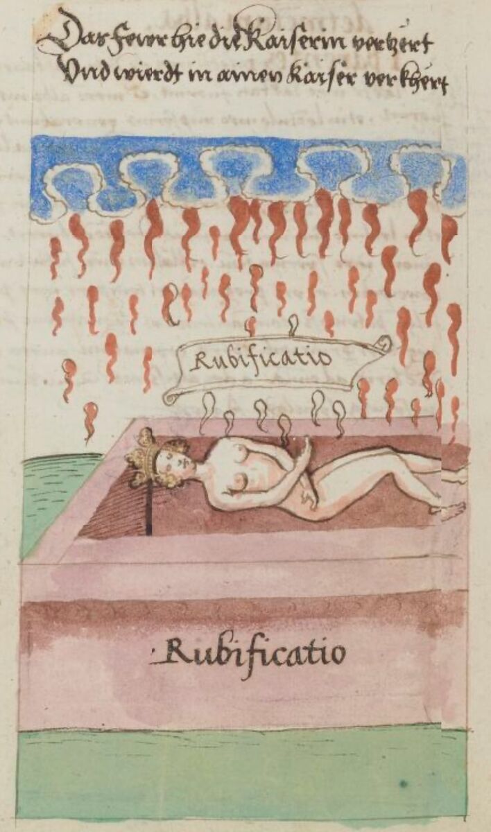 На цьому етапі більш досконала матерія, що утворилася, має знову бути розчинена у Ртуті, пройти псування і смерть старої форми. На цьому циклі Nigredo трансформацію має пройти маскулінність - тепер Король лежить в нижній частині Гермафродита, а чистий принцип Еросу у вигляді гомункула жіночої статі покидає тіло старої форми.